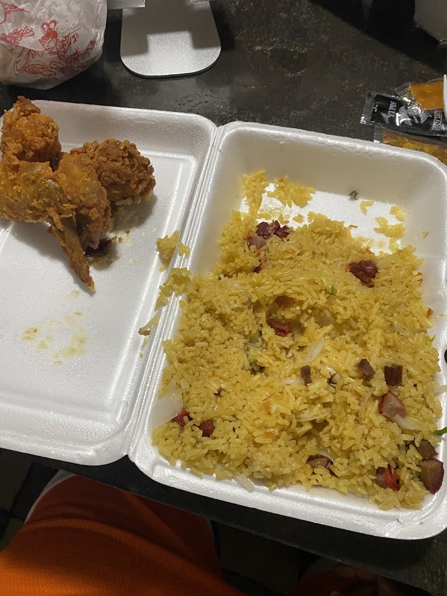 Pork Fried Rice with Fried Chicken Wings